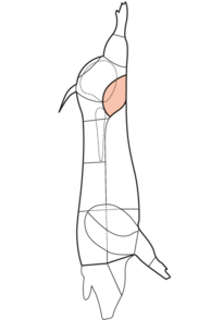 Der Zuschnitt sollte auch hier entlang des Bindegewebes erfolgen, das die einzelnen Muskelstränge voneinander trennt. Daraus ergeben sich automatisch die genannten drei Teile.