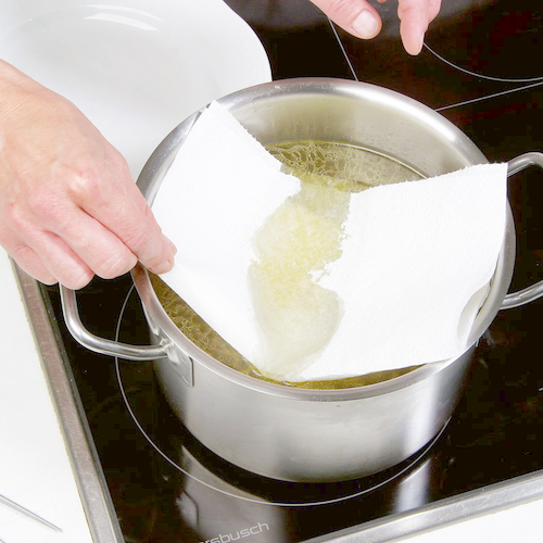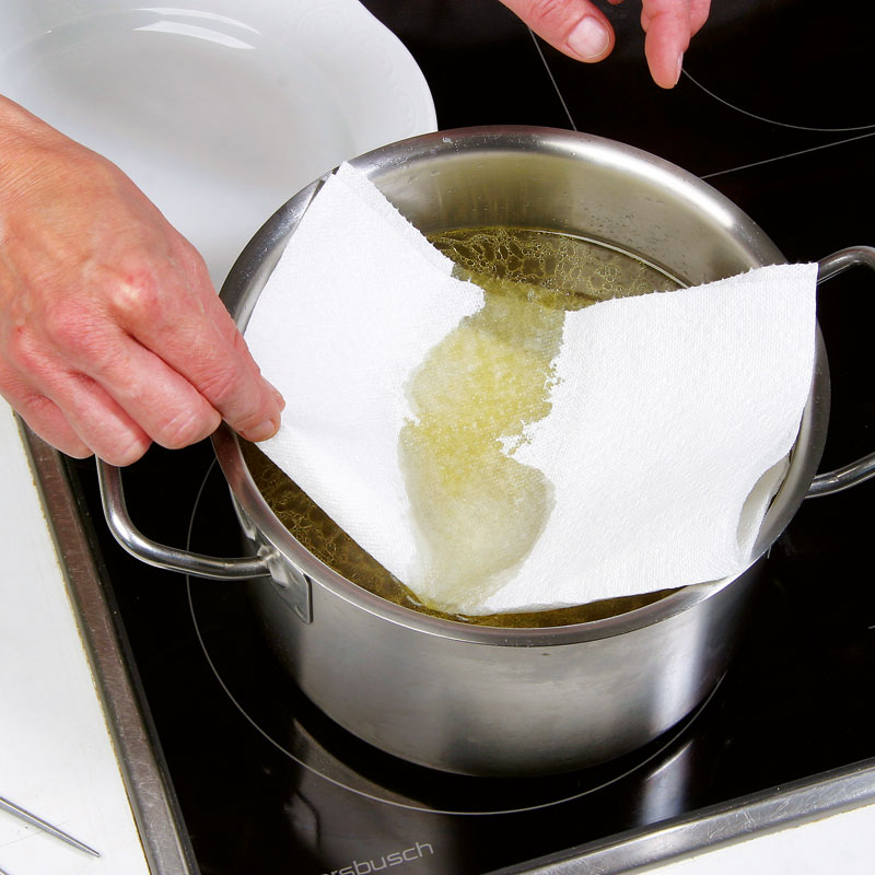 - Restliches Fett an der Oberfläche mit Küchenpapier absaugen.