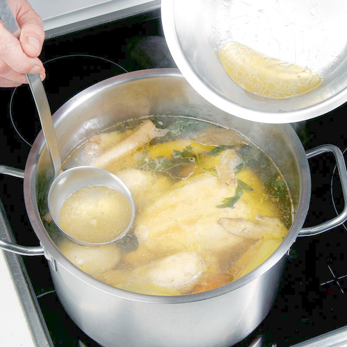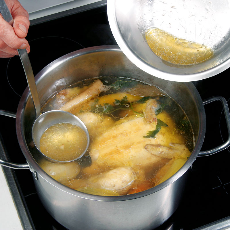- Von Zeit zu Zeit das sich an der Oberfläche bildende Fett abschöpfen.